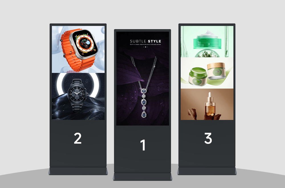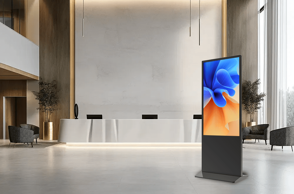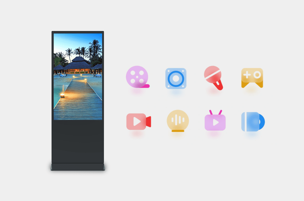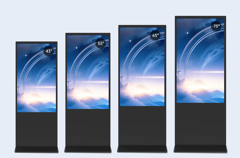 43” 50″ 55” 65” 75” vertical advertising machines are adaptable to multiple sizes. Whether it is a small convenience store, a bank service hall, or an outdoor square advertisement, or an airport terminal guide, Floor Kisko can meet the full-scene empowerment and help brands achieve precise marketing and efficient information delivery.