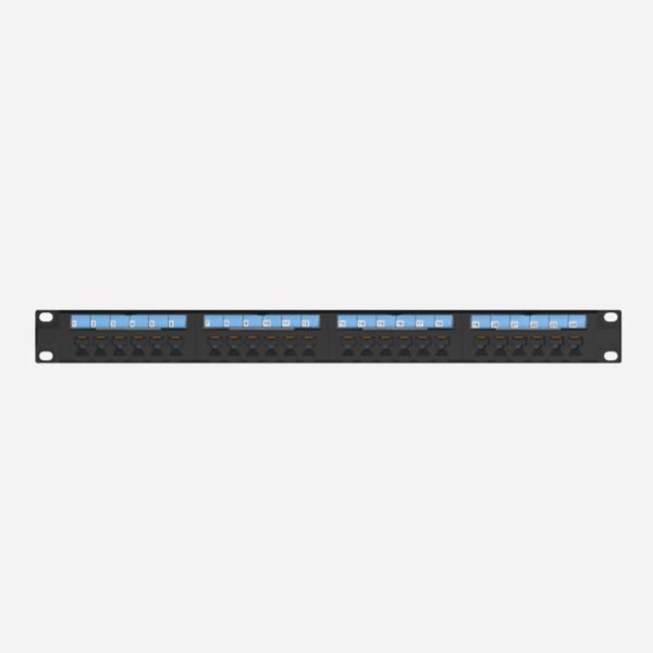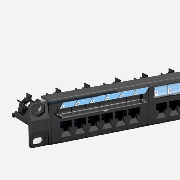 A Cat.6 UTP 1U 24-port patch panel is a standard 19-inch rack-mountable hardware unit designed for organizing and terminating up to 24 unshielded twisted pair (UTP) Category 6 Ethernet cables. It occupies 1 unit (1U) of rack space, making it ideal for efficient cable management in data centers, server rooms, and network closets. This patch panel provides a clean and structured interface for connecting networking equipment like switches, routers, and servers to horizontal cabling infrastructure, facilitating easy identification, troubleshooting, and re-patching of network connections.